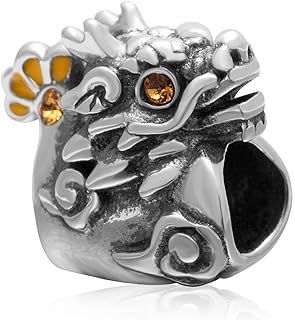 Soulbead Kettenglied / Schmuckanhänger, Design: chinesischer Drache, Antik-Look, aus 925er-Sterlingsilber, besetzt mit Topas-Kristallen, passend für alle großen europäischen Armbandhersteller