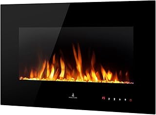 Sekey Home Elektrokamin | Elektrisches Kaminfeuer | Deko Kamin | Kaminofen Wandkamin | Thermostat | Wochentimer | 7 Flammenfarben | Dimm-Funktion | Fernbedienung, Geräuscharm ,Wandmontage, Schwarz