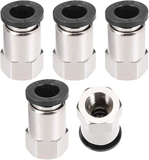 sourcing map 5 Stück Rohrverschraubungen Drücken Verbinder 8 mm Rohr Außendurchm. x 1/8 BSPT Buchse Gerade Pneumatischer Anschluss Rohrverschraubung Silber Ton