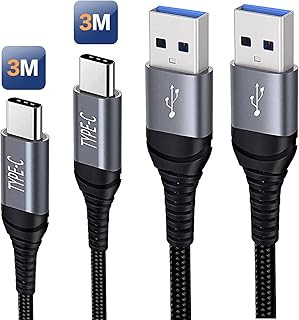 Lang USB Typ C Kabel 3M,10ft 2Pack USB C Kabel Nylon Geflochten USB Typ C Ladekabel und Datenkabel für PS5 Controller,Samsung Galaxy S21 S20 FE S10+,A52 A72 A32 A42 5G,Tab A7 10.4 2020,Tab A 10.1 2019