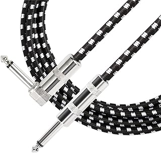 Gitarren Instrument langes Kabel 3M/10ft, LoongGate Premium geflochtene Jacke 1/4"gerade bis 90 Grad Rechte Winkel Gitarren Schnur für Gitarre, Bass, mandolin, Instrument (3 Meter/10ft)