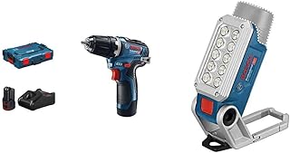 Bosch Professional 12V System Akkuschrauber GSR 12V-35 (2x 3,0 Ah Akku, 12 Volt, max. Drehmoment hart/weich: 35/20 Nm) & 12V System Akku LED-Lampe GLI 12V-330 (330 Lumen, Betriebszeit: 180 min/Ah)