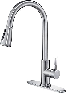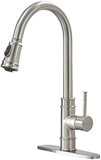 AIMADI Küchenarmatur mit herausziehbarer Brause, handelsüblicher Einhandgriff, hoher Bogen, Edelstahl, gebürstetes Nickel, Küchenspüle