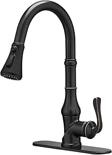 Bathfinesse Küchenarmatur mit Sprüher ausziehbarer Wasserhahn für Küchenspüle, Einzelgriff, hoher Bogen mit Deckplatte, Öl eingeriebenes Bronze, Küchenarmatur zum Herunterziehen, 3 Funktionen