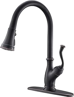 Homevacious Küchenarmatur, ölgeriebene Bronze, Einzelgriff, hoher Bogen, ausziehbar, einstufig, Edelstahl, Küchenspüle, Wasserhähne mit herausziehbarem Sprühgerät