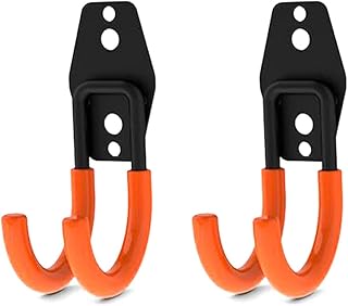 Zasvec Wandhalterung Garage 2 Stück Wandhaken Garage Haken Haken Schwerlast Wandhalterung Haken Garage Storage Doppelhaken Wandhalterung Werkzeug für Fahrräder Seile Leitern (Orange)