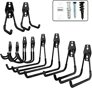 Railee Wandhaken Garagenhaken, 10 Stück Garage Haken Garage Storage 5 Größe Doppelhaken Wandhaken Heavy Duty Wandhalterung Werkzeughalter für Leiter, Geräte, Werkzeuge, Stuhl, Schlauch, Fahrrädern