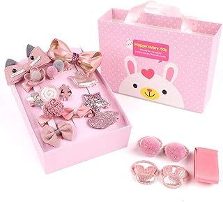 PINHEN 18 Stück Kinder Schleife und Haargummis Set - Hair Clips Haarspangen Kinderschmuck Haarschmuck für Kinder Geburtstagsgeschenk Kindertagsgeschenk mit Geschenkbox (Pink)