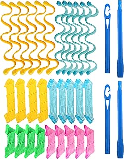 Herefun 40 Stück Lockenwickler Curler, Haar Curler Ohne Hitze, Magic Spiral Lockenwickler Set mit 2 Styling-Haken, DIY Manuelle Lockenwickler über Nacht für Frauen Mädchen von Zuhause